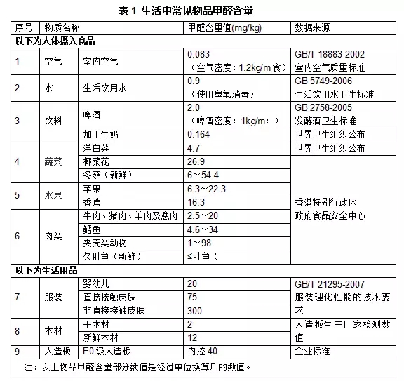 1、生活中常見物品的甲醛含量