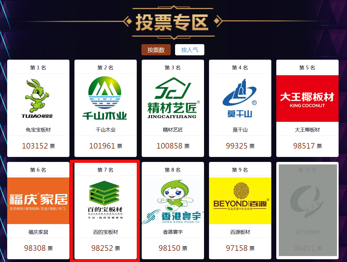 自此2018年度中國板材品牌網絡評選活動投票階段正式結束,