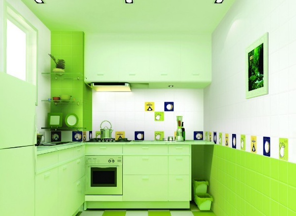 4、廚房鮮艷的黃、紅、藍(lán)及綠色都是快樂的廚房顏色,而廚房的顏色越多,家庭主婦便會(huì)覺得時(shí)間越容易打發(fā)。乳白色的廚房看上去清潔衛(wèi)生,但是別讓帶綠色的黃色出現(xiàn)。