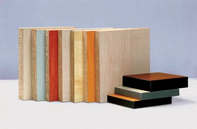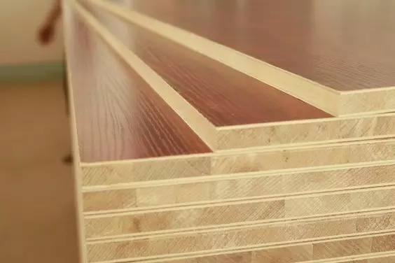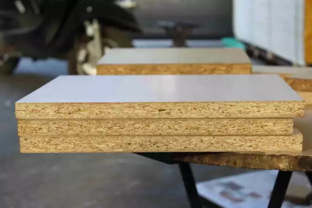 是以刨花板工藝生產(chǎn)的板材,是由木材或其它木質(zhì)木質(zhì)纖維素材料制成的碎料,兩邊使用細(xì)密木纖維中間夾長質(zhì)木纖維,施加膠黏劑膠合成的人造板。
